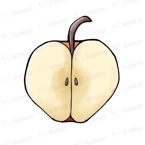 切った赤リンゴのイラストです